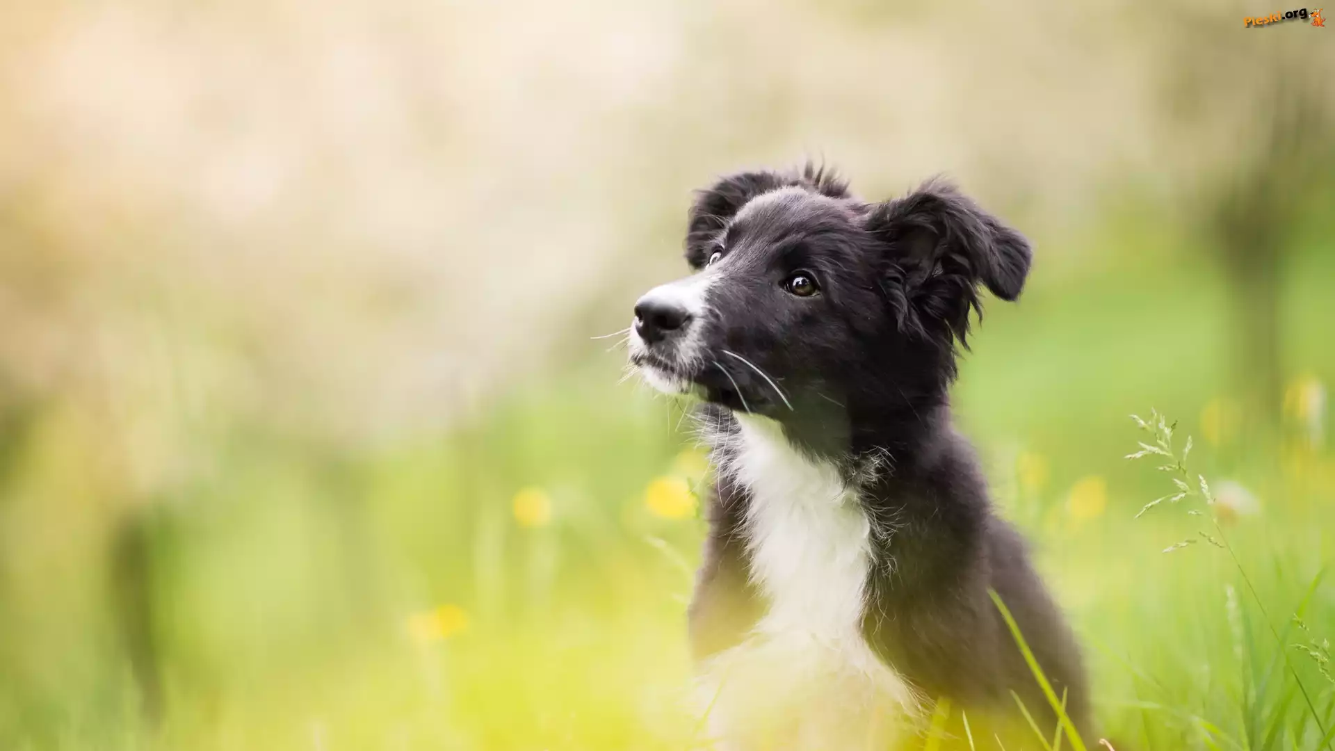 Łąka, Szczeniak, Pies, Border collie, Rozmyte tło, Pieski