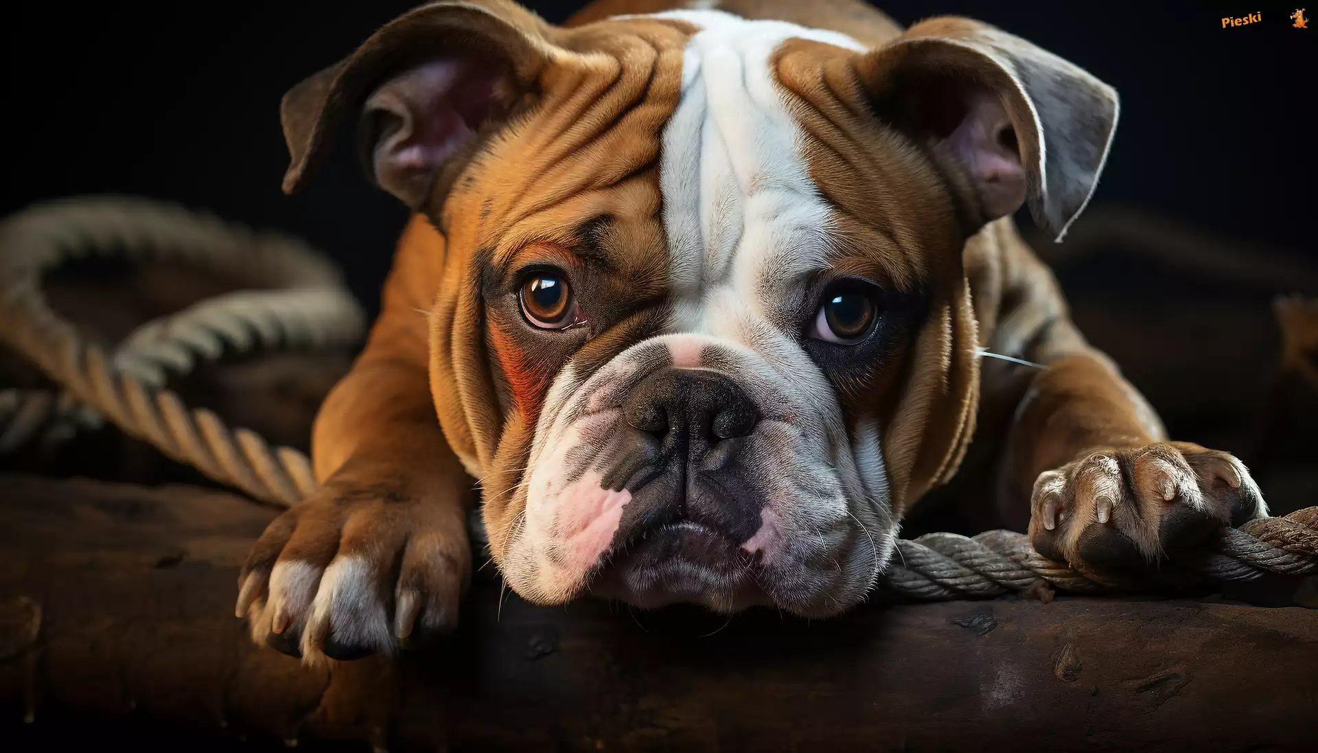 Drewno, Szczeniak, Buldog angielski, Pies, Lina, Spojrzenie