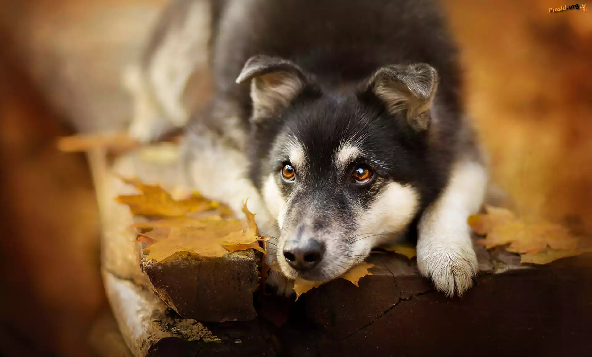 Pies, Ławka, Liście, Pieski