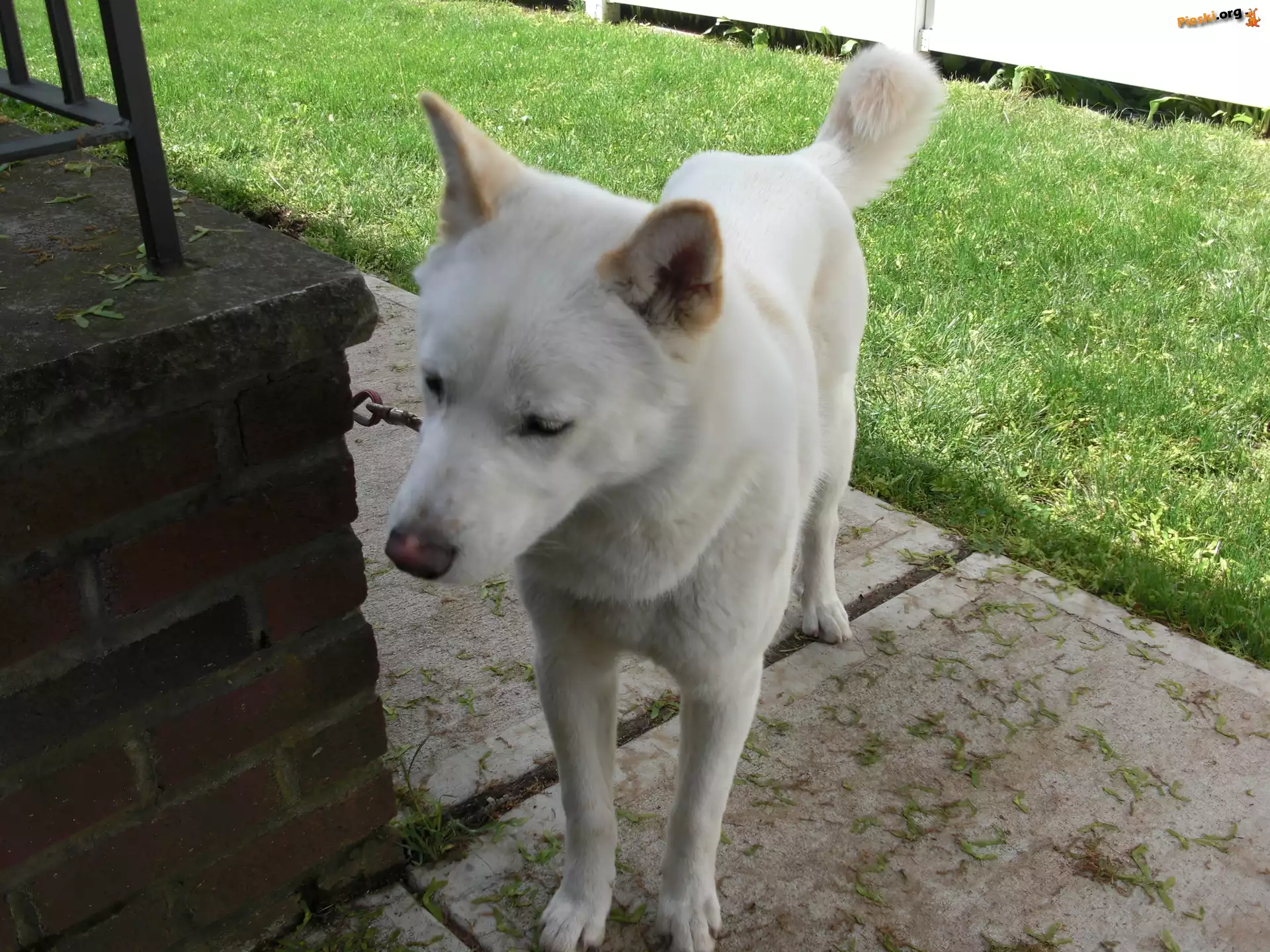 kły, pysk, język, Jindo głowa, Jindo biały, Jindo Kamyczki, Jindo, Piesek