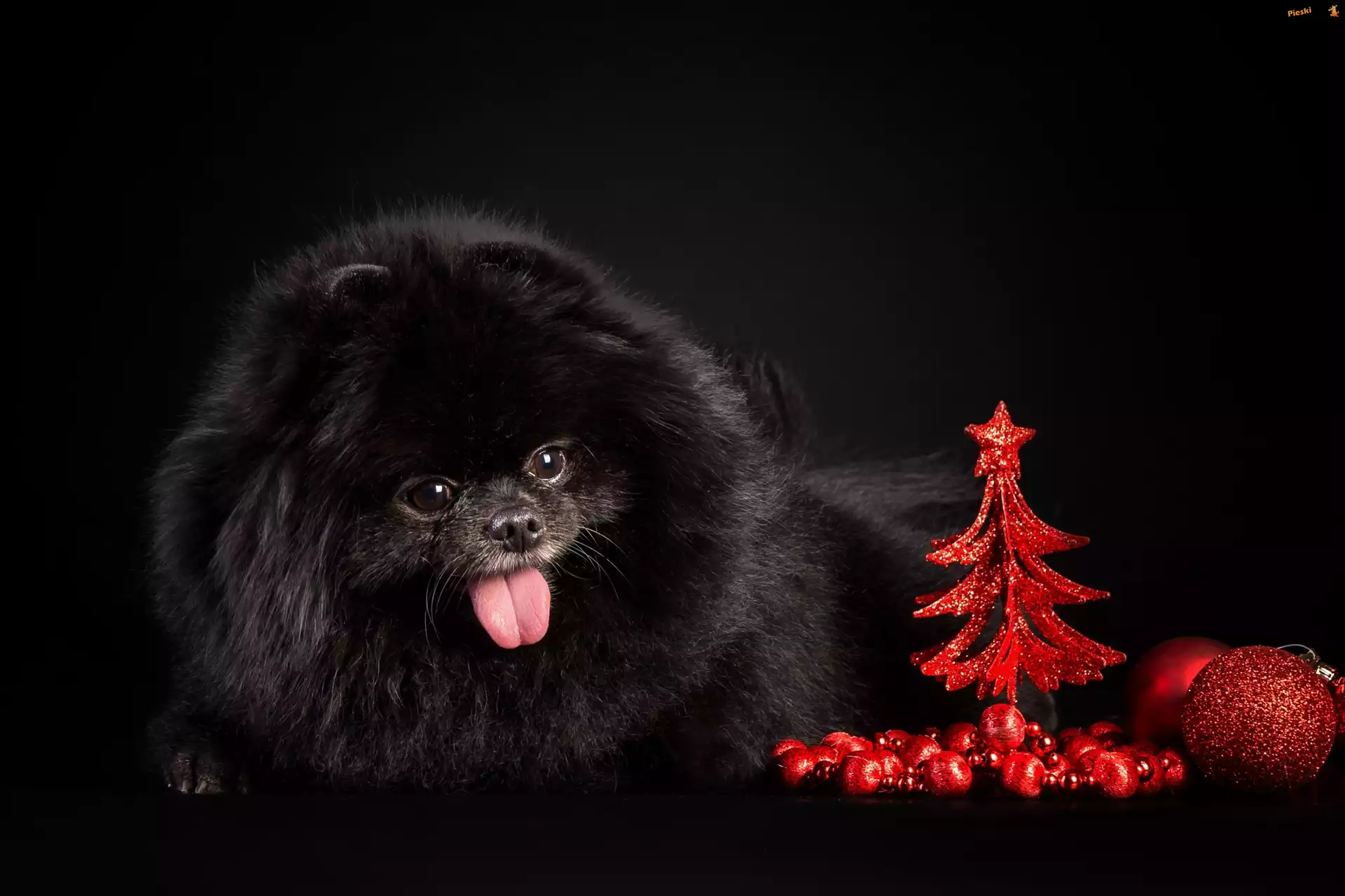 Choinka, Piesek, Czarny, Język, Bombki