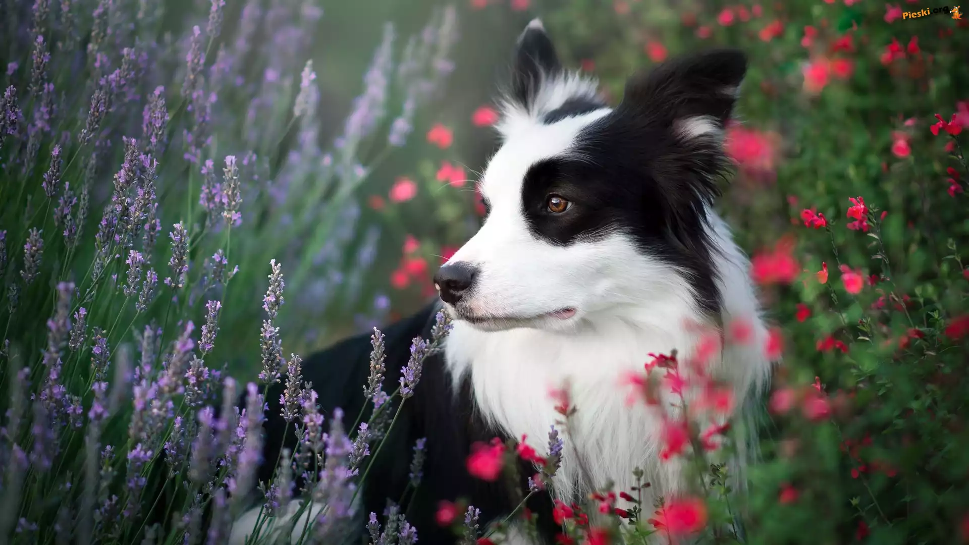Łąka, Pies, Border collie, Kwiaty