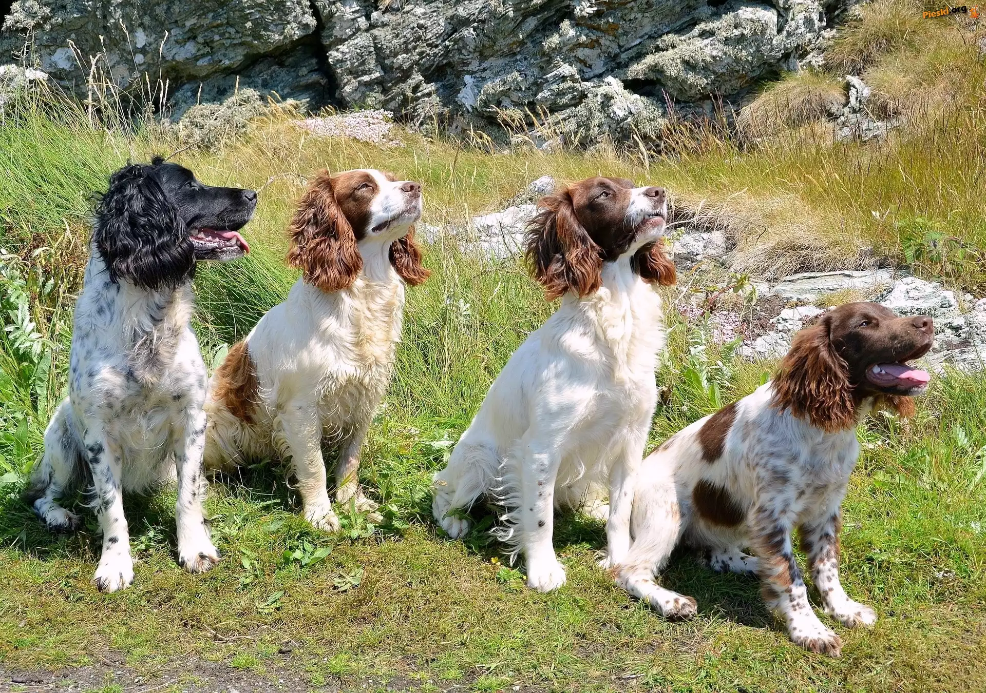 Łąka, Cztery, Spaniele, Pieski