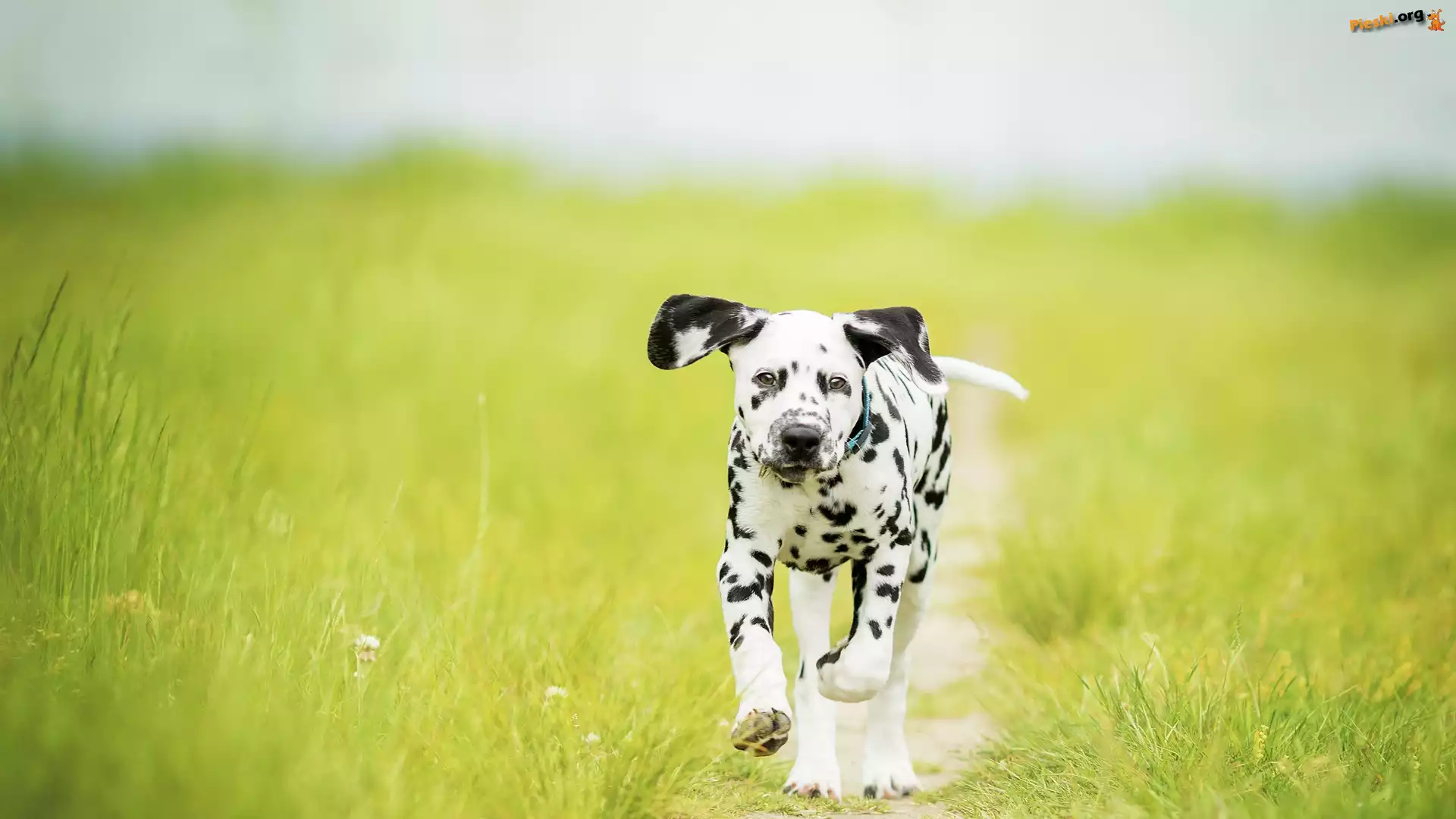 Łąka, Szczeniak, Dalmatyńczyk, Trawa, Pieski