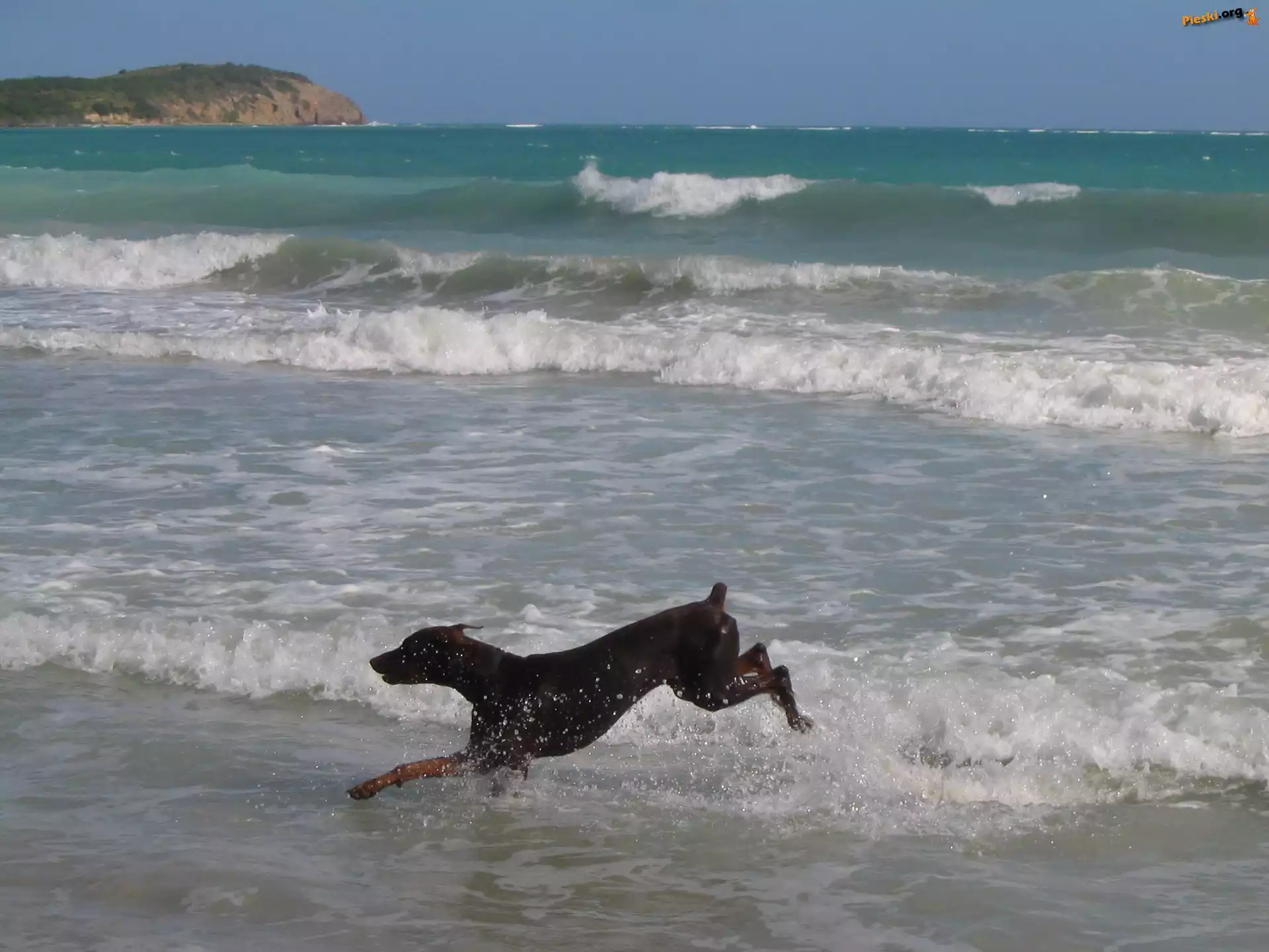 Biegnący, Doberman, Plaża