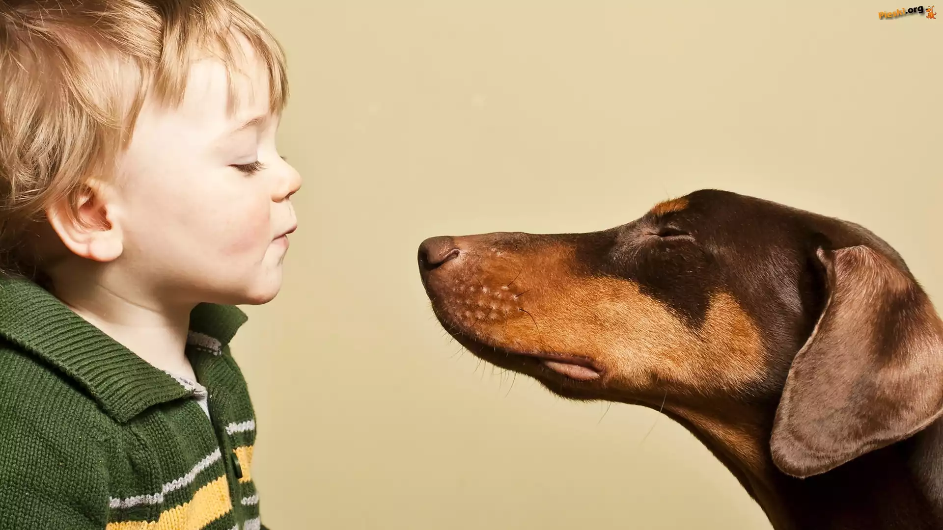 Doberman, Dziecko, Chłopczyk, Całus, Pieski
