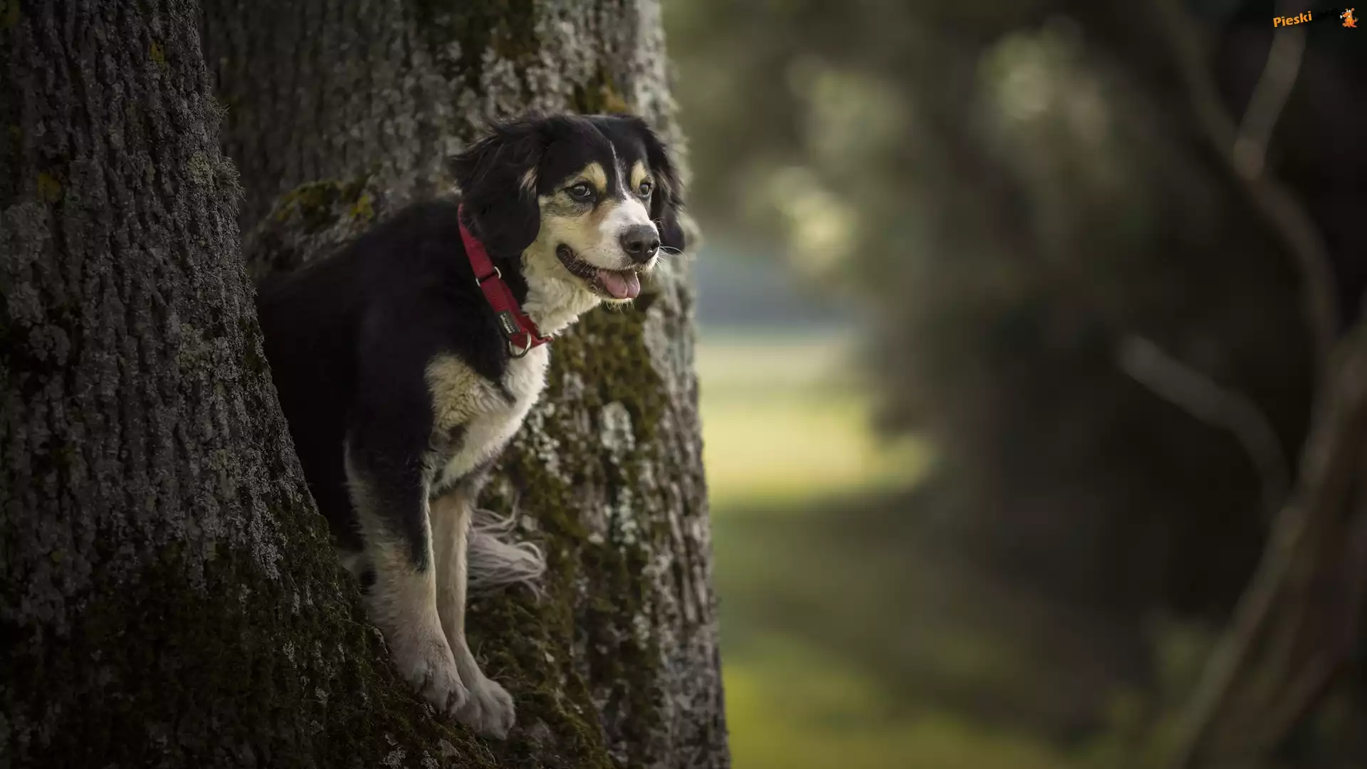 Drzewo, Pies, Kundelek, Bokeh, Pieski