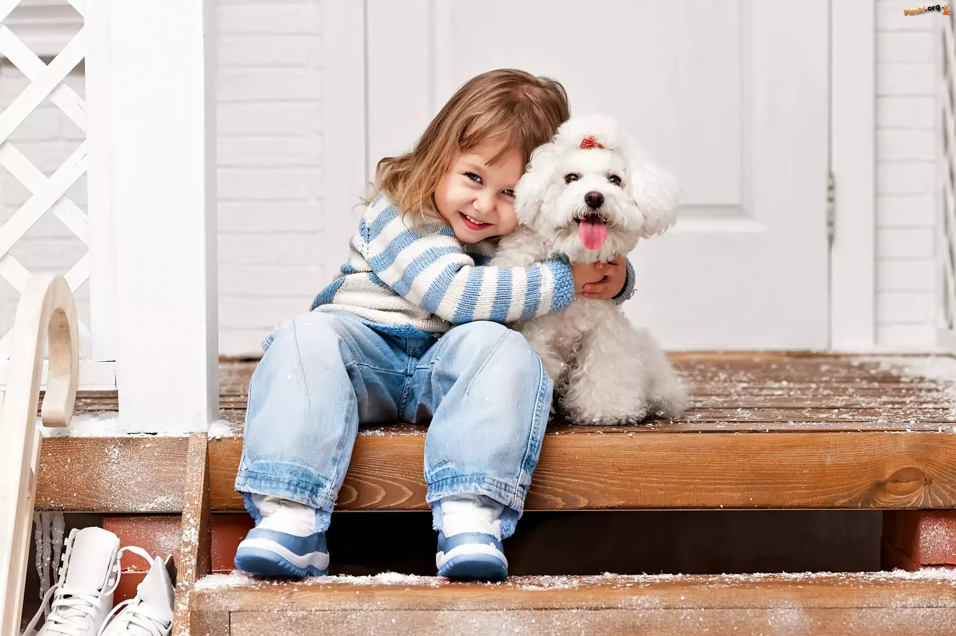 Dziewczynka, Pudel miniaturowy, Schody Pies, Róża, Pudel miniaturowy Border collie, Trawnik, Psy, Pudel miniaturowy Żółte, Biały, Pudelek, Kwiaty Dziewczynka, Sanki, Pudel miniaturowy Obroża, Biały, Pudel, Sofa Płot, Pies, Pudelek miniaturowy, Kwiaty Dziewczynka, Uśmiechnięta, Radosna, Pudel miniaturowy