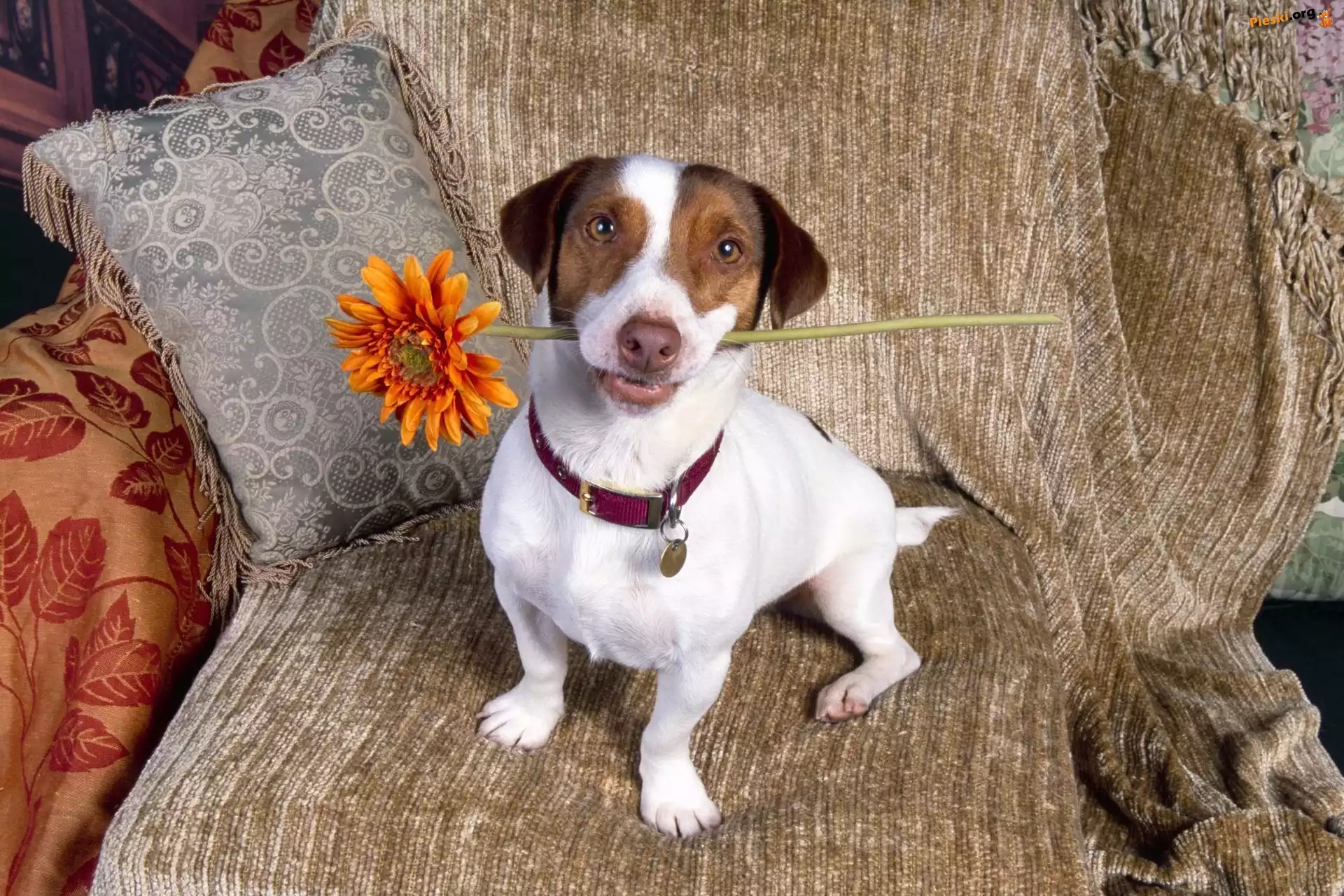 Fotel, Piesek, Kwiatek, Poduszka, Pieski
