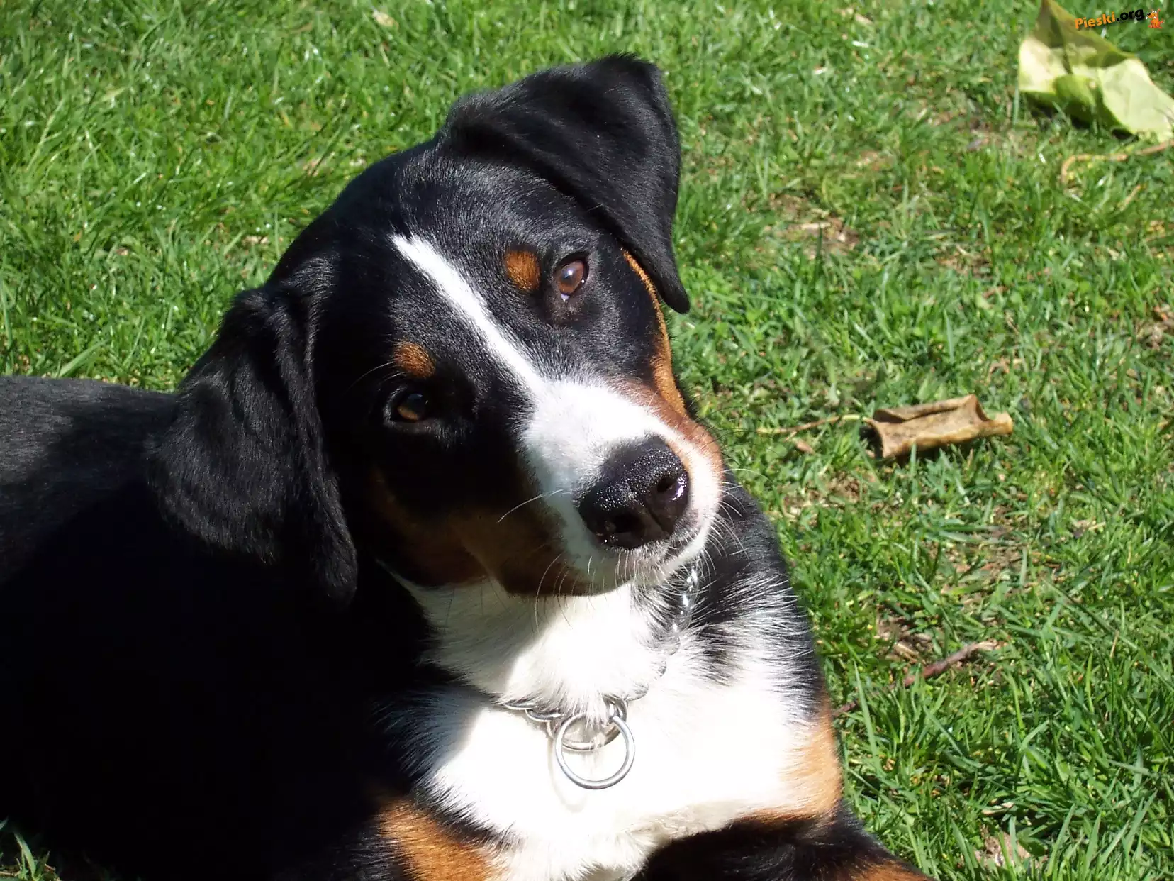 głowa, Appenzeller głowa, język, Appenzeller Pies, Trawa, Łąka Szczeniak, Pies, Appenzeller, Trawa