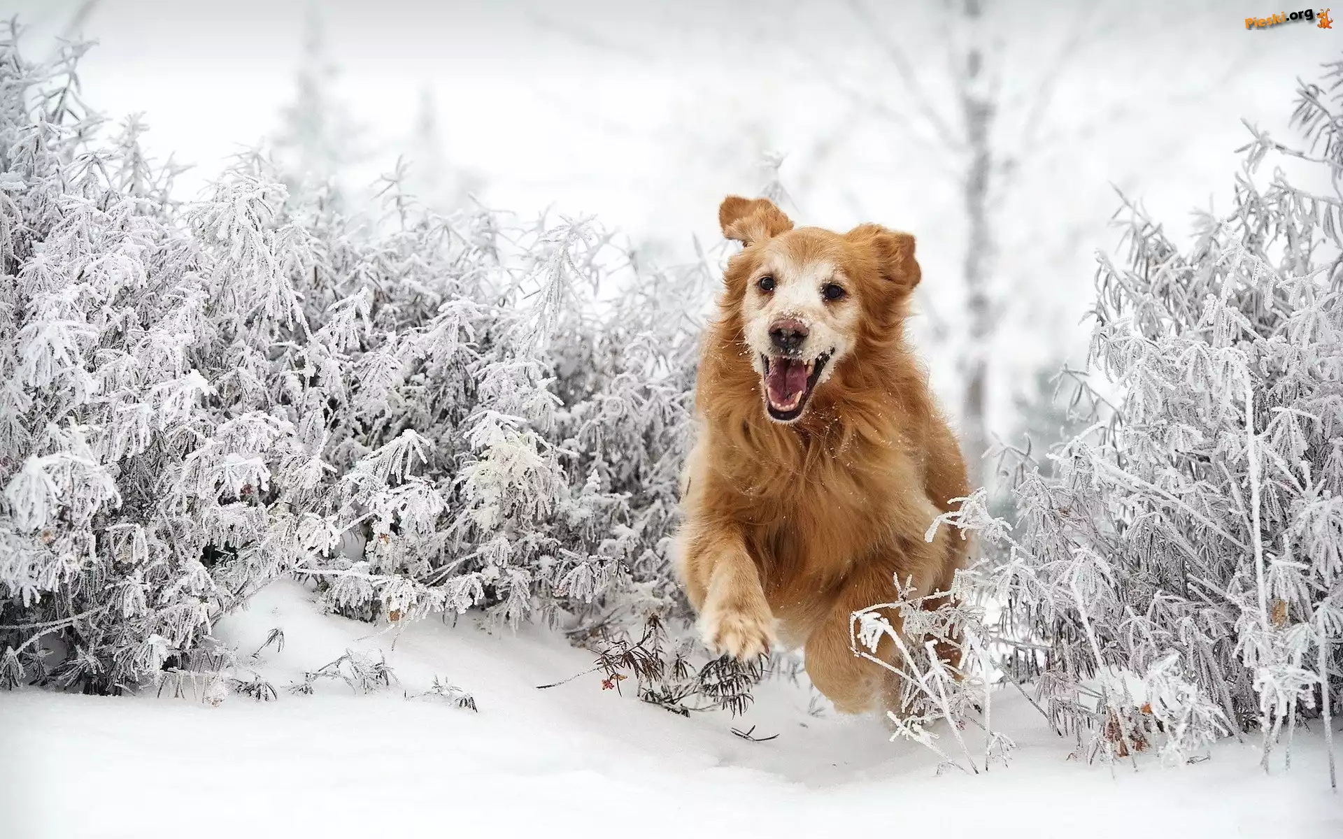 Golden Retriever, Bieg, Śnieg