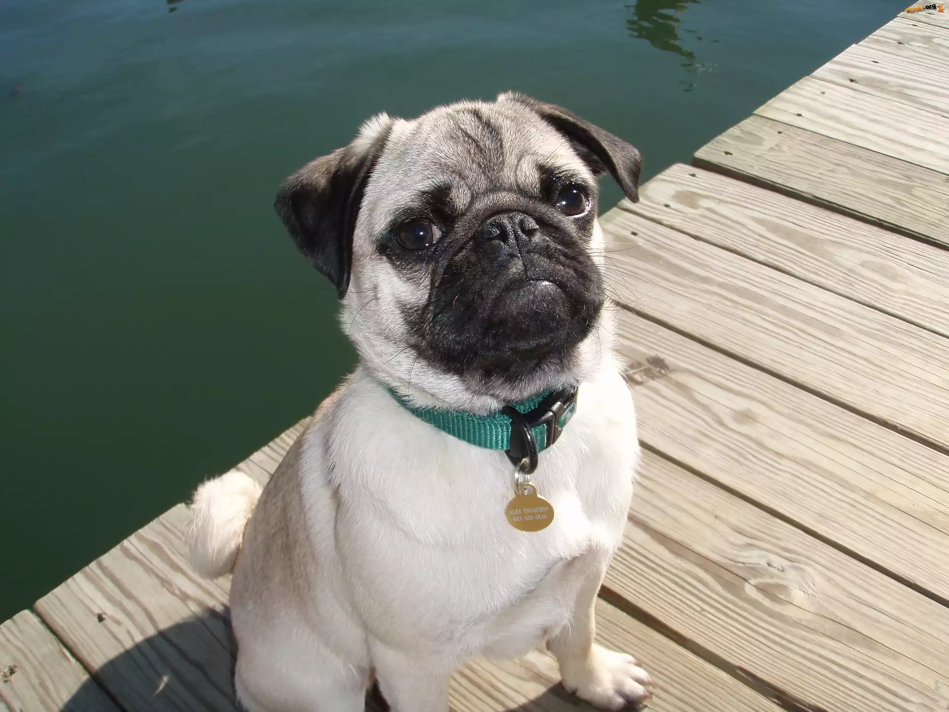 Mops, Kładka, Woda, Pieski