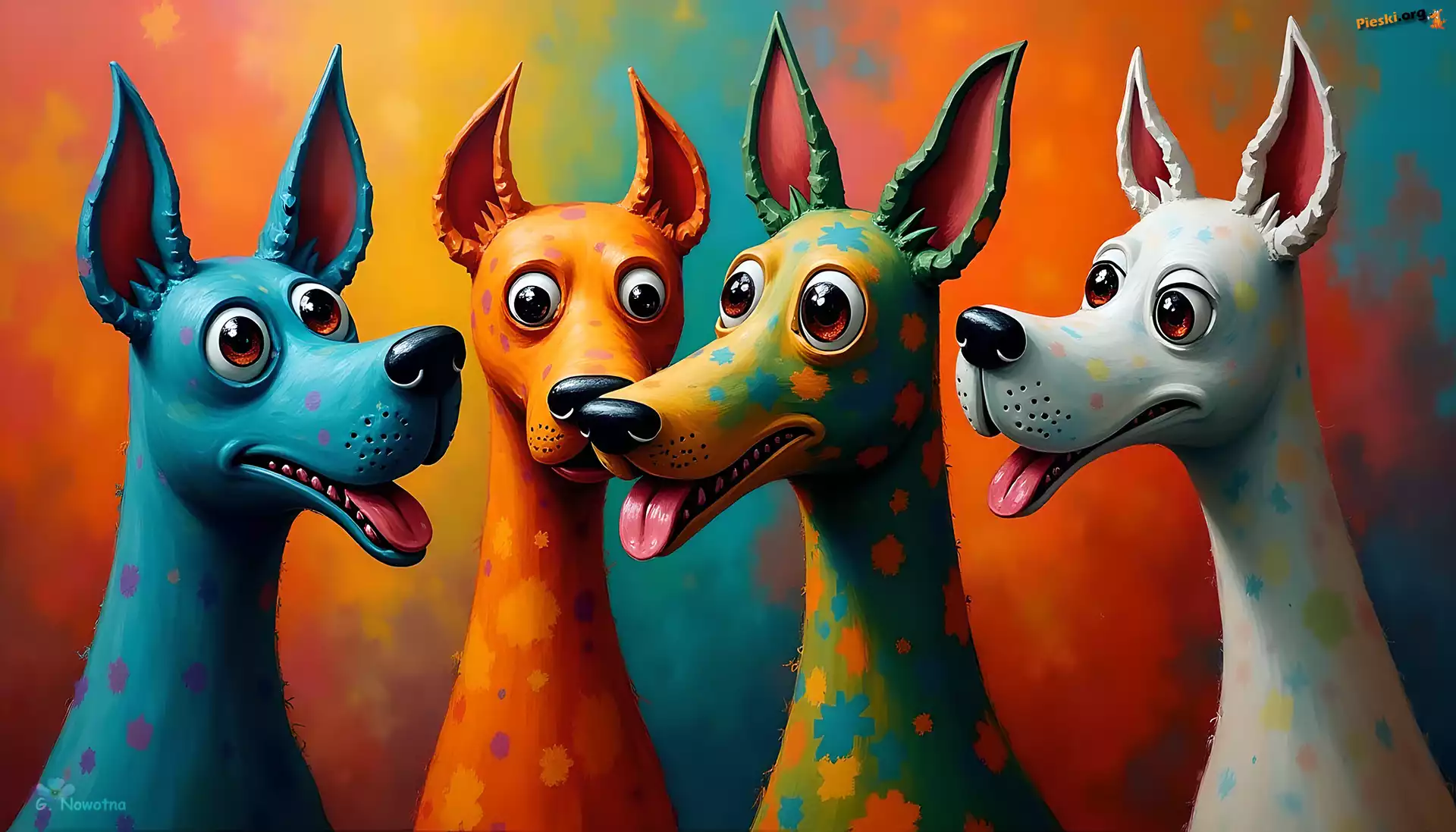 Psy, Cztery, Grafika, Kolorowe