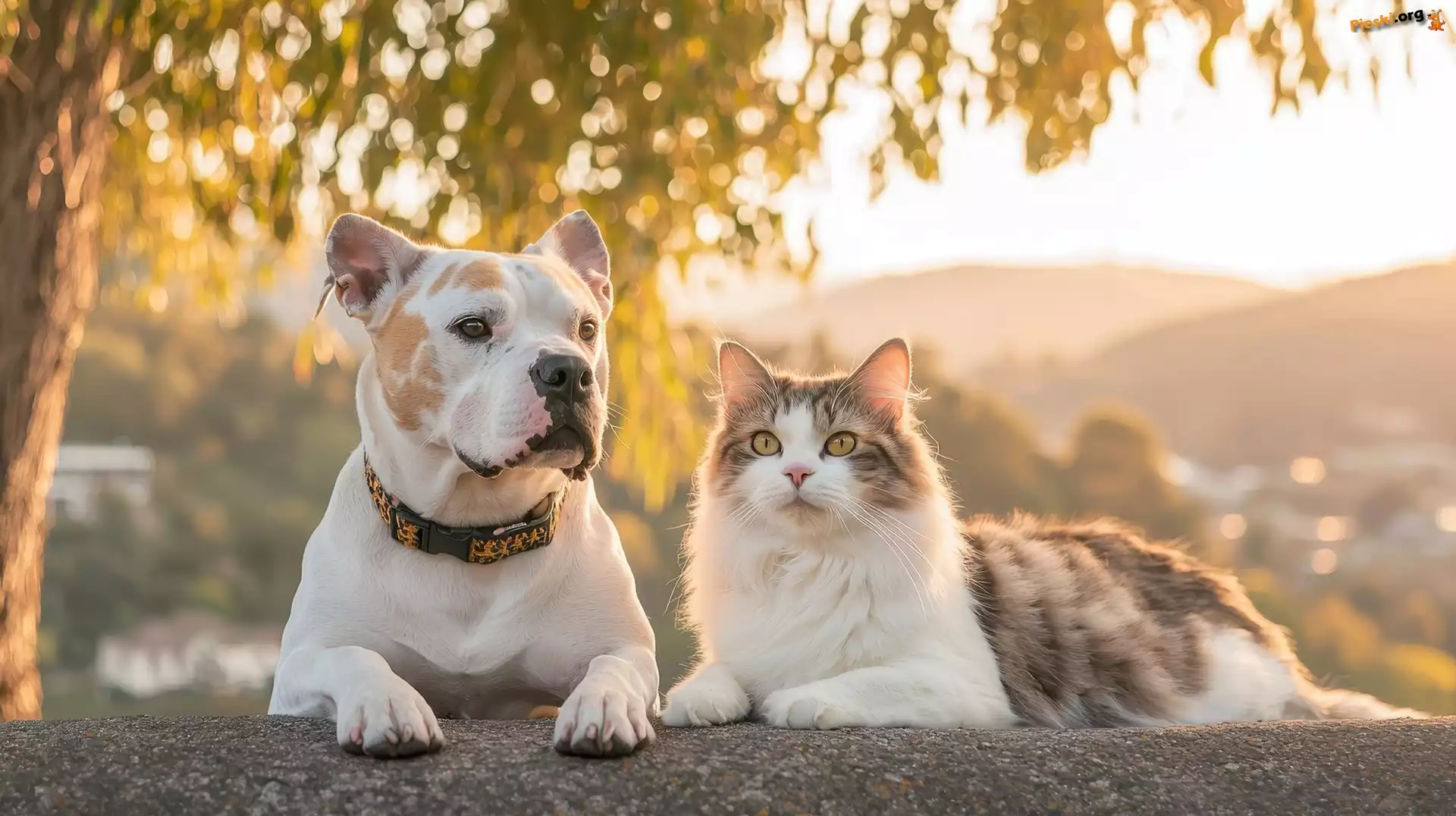Grafika, Drzewo, Pies, Kot