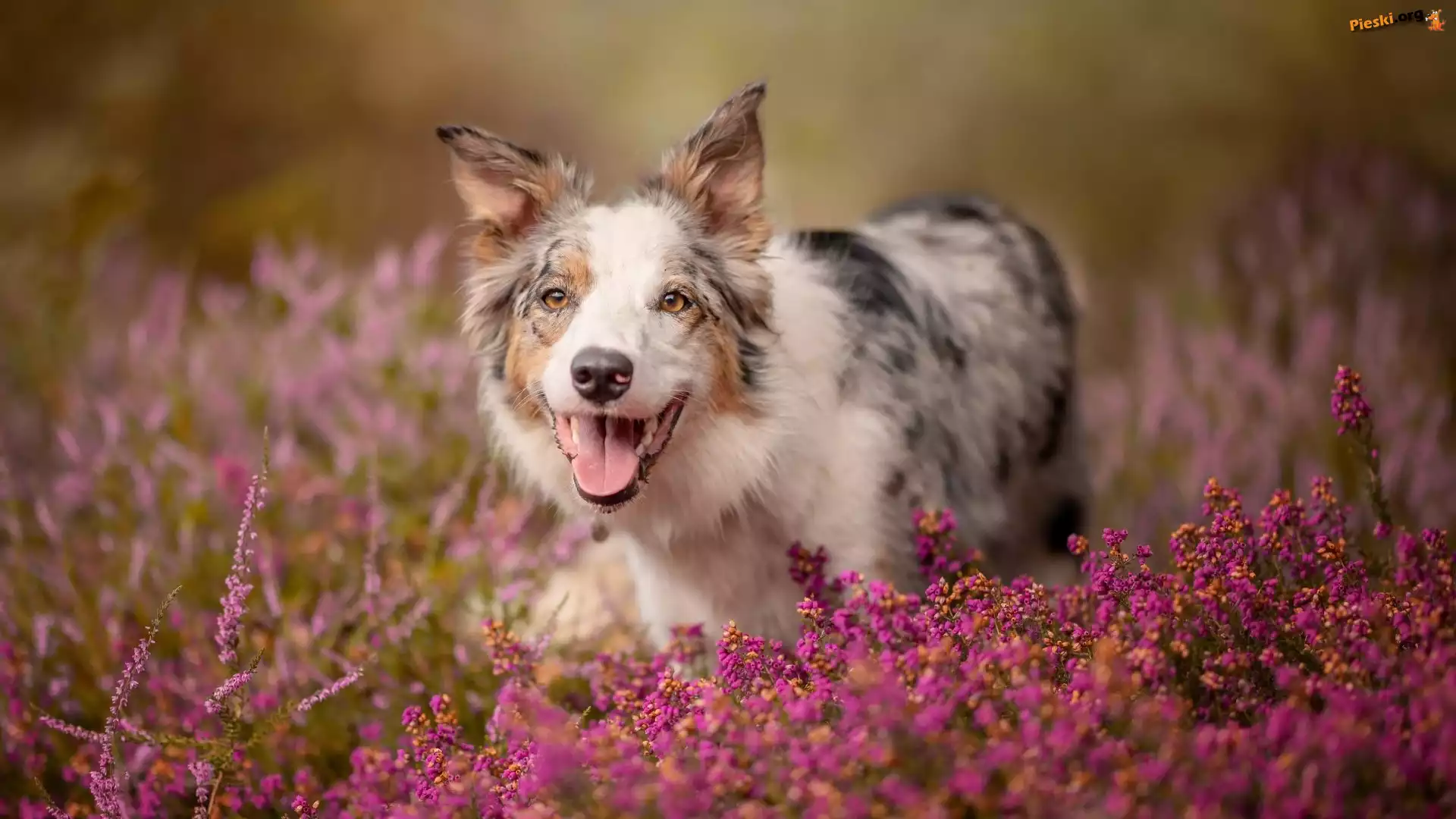 Kwiaty, Pies, Border collie, Wrzośce, Pieski