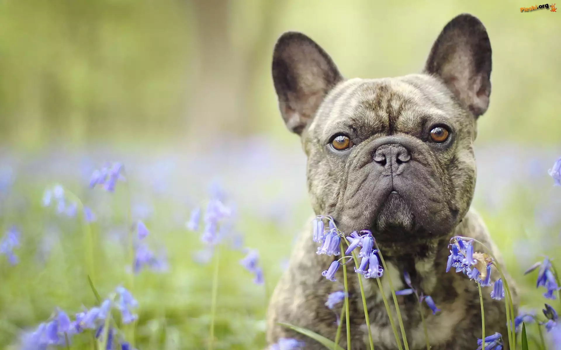 Kwiaty, Pies, Buldog francuski, Cebulica