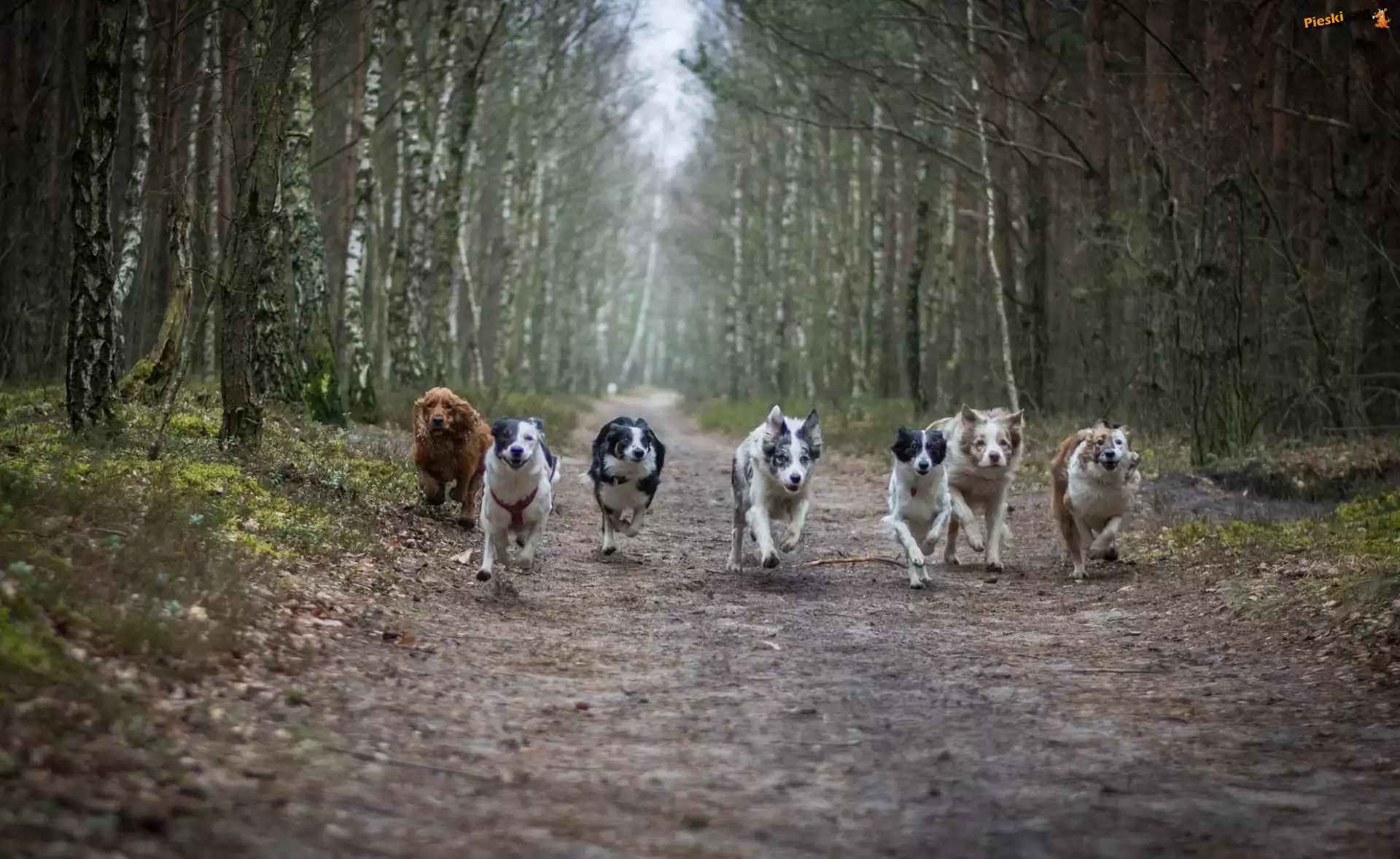 Las, Psy, Bieg, Droga, Pieski