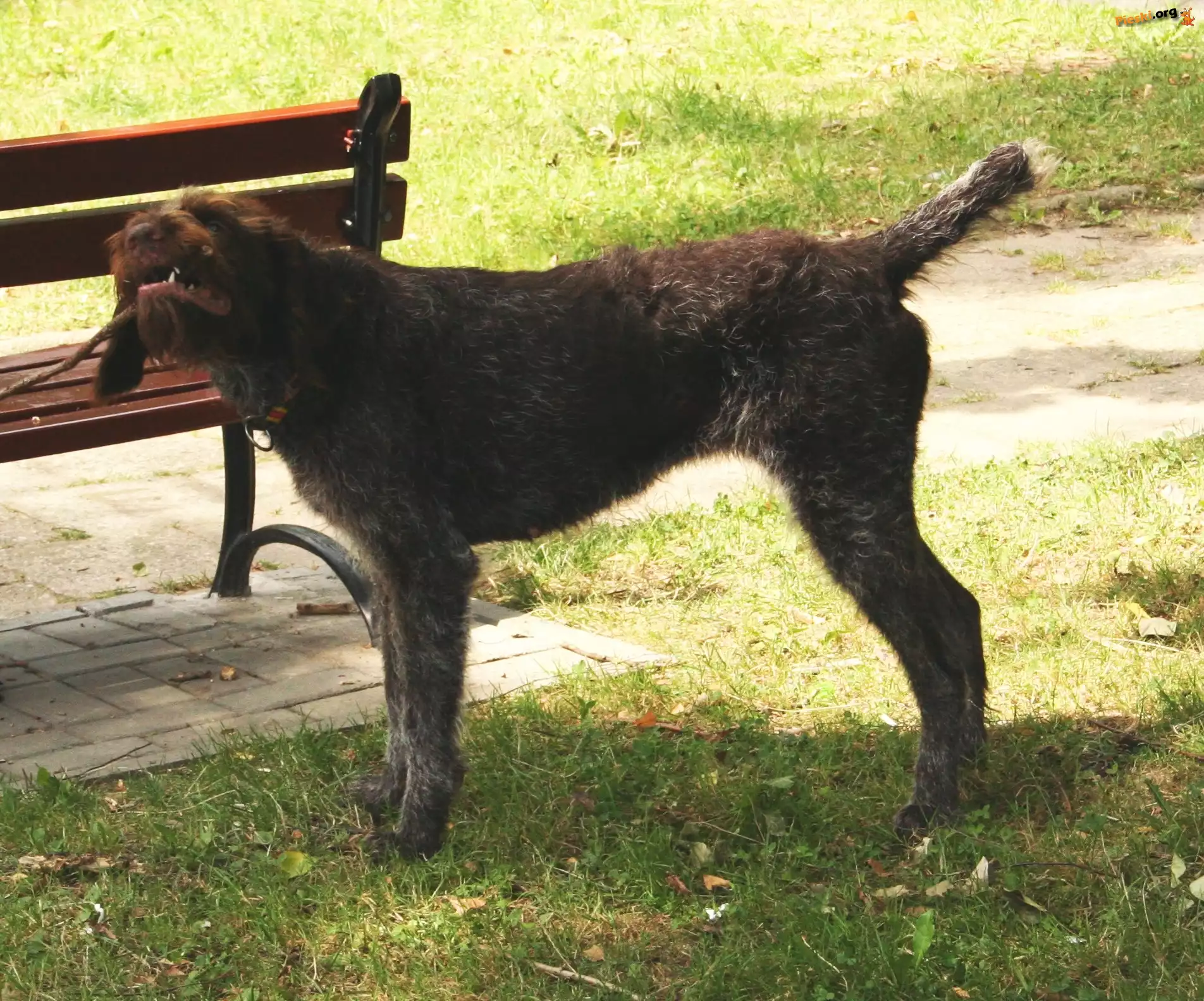 ławka, Wyżeł niemiecki szorstkowłosy, trawa, kij