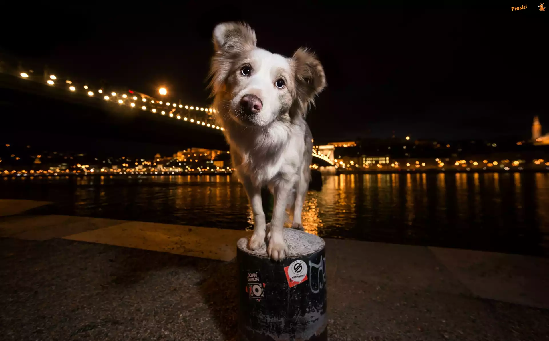 Światła, Pies, Miasto, Noc, Pieski
