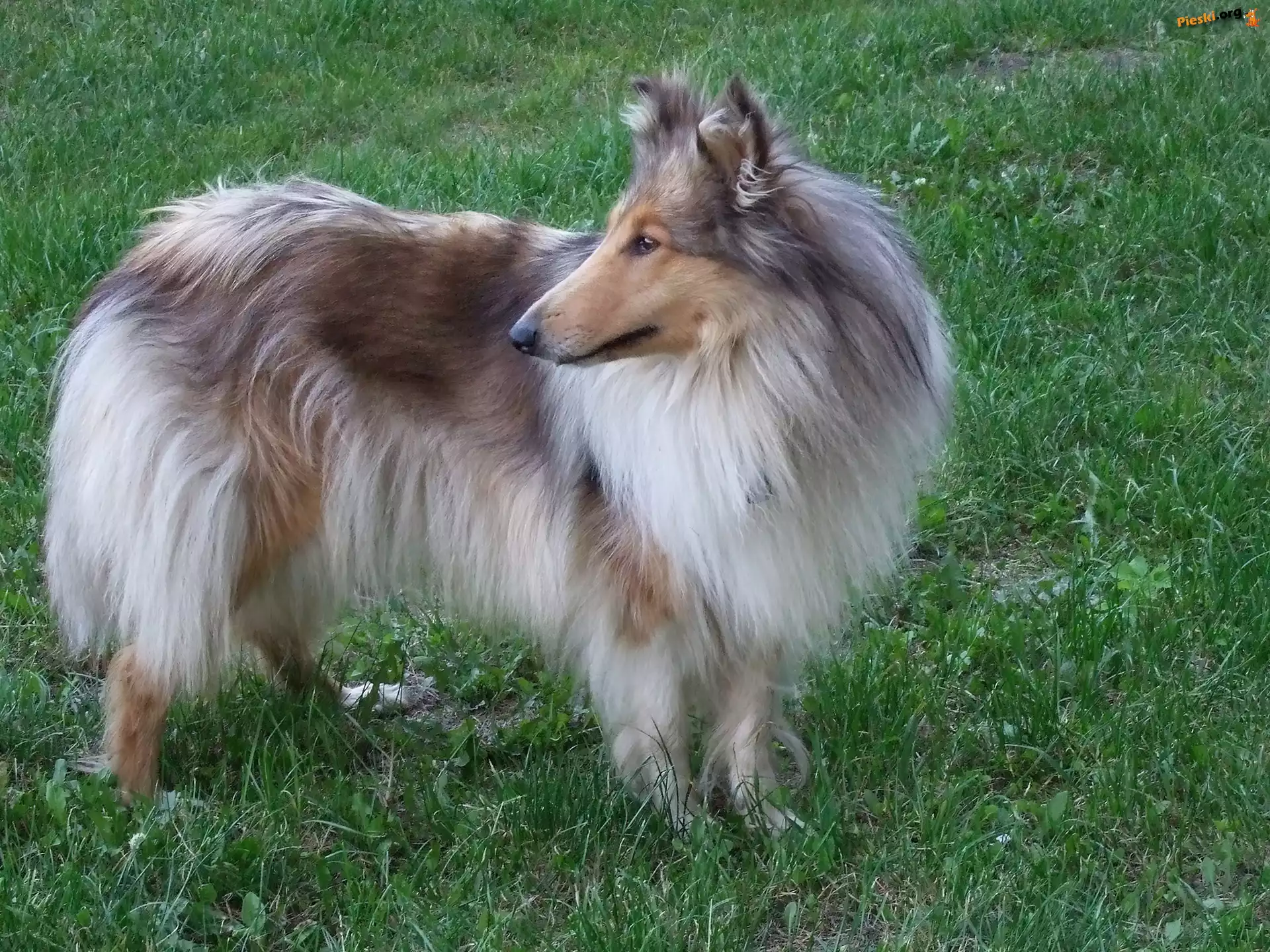 Owczarek szkocki długowłosy, zielona, trawa, Pieski
