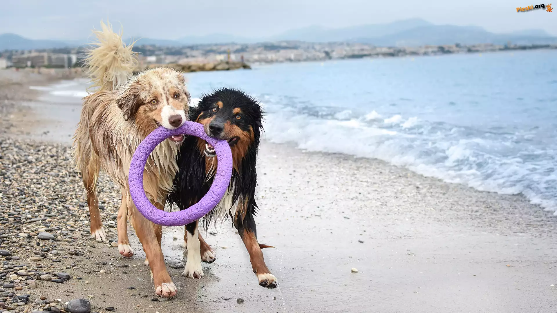 Owczarki australijskie, Mokre, Dwa, Psy, Kółko, Pieski