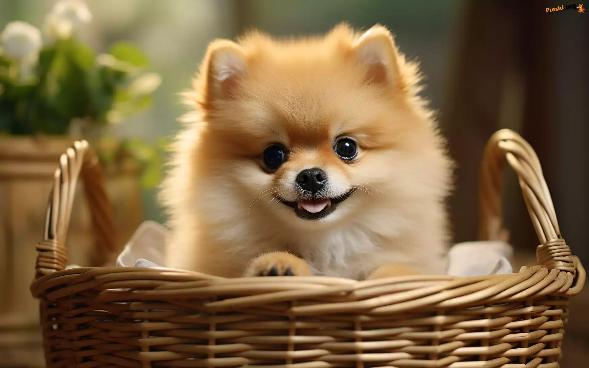 Koszyk, Szpic miniaturowy, Pies, Pieski