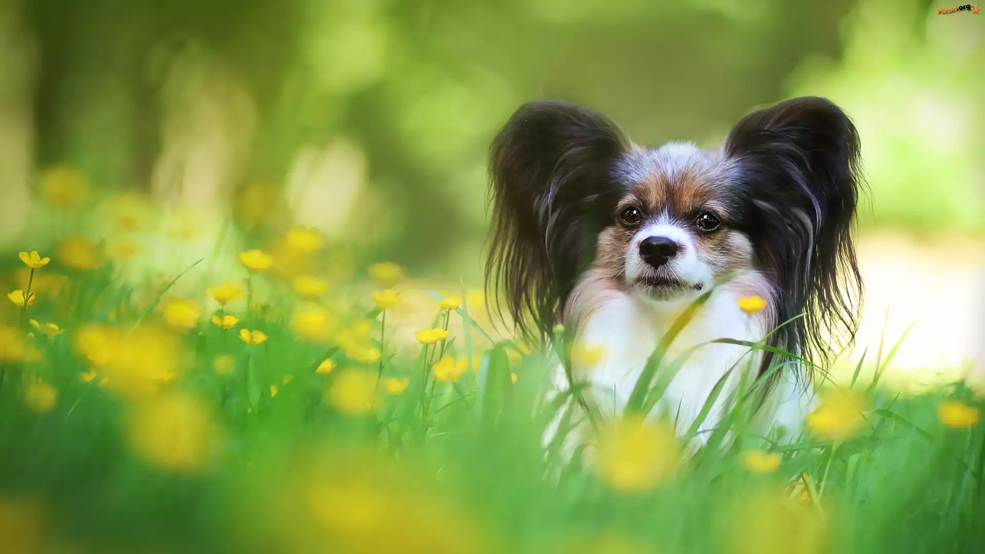 Pies, Spaniel kontynentalny Papillon, Trawa