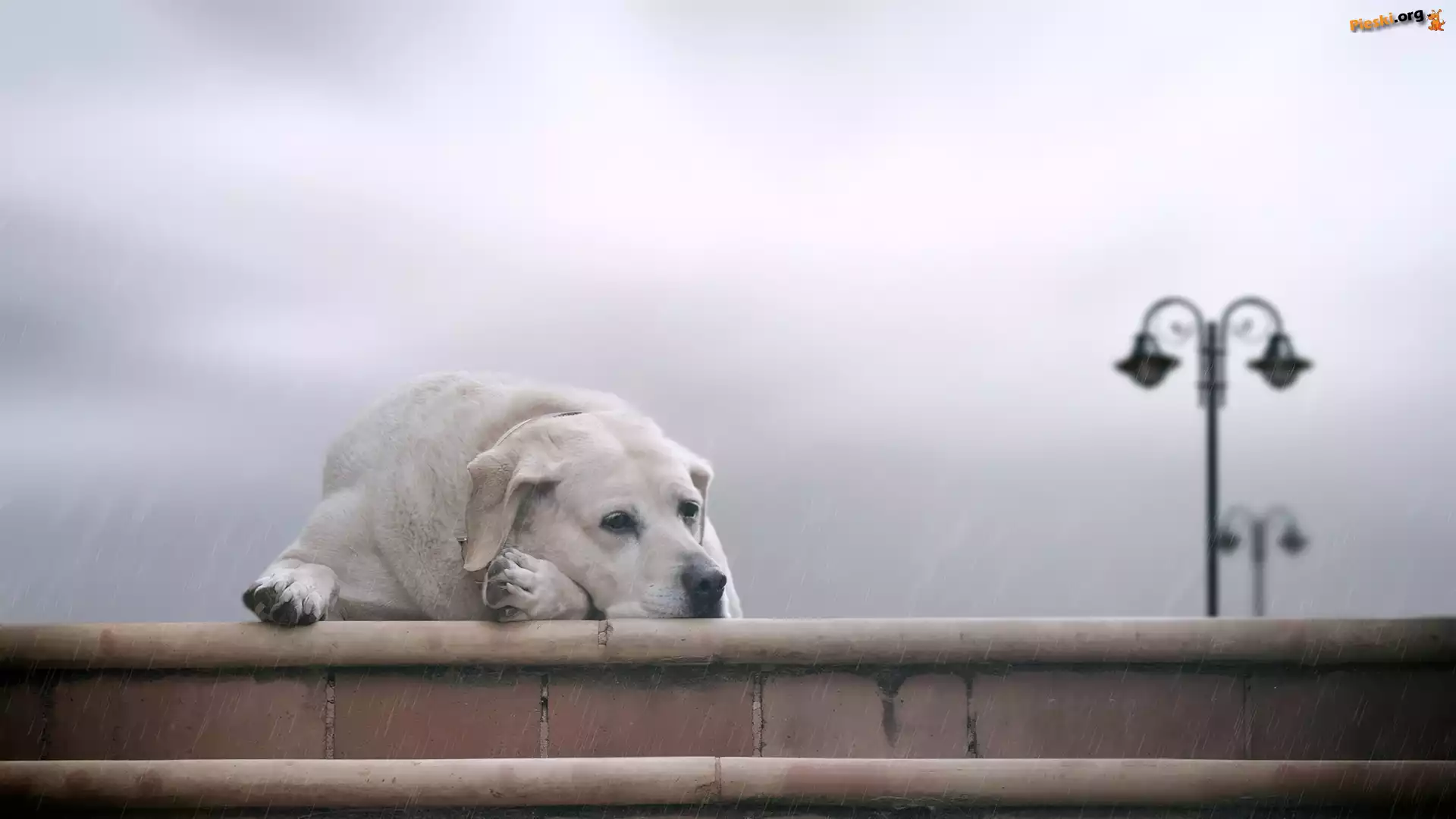Smutny, Labrador, Schody, Pies, Deszcz, Pieski