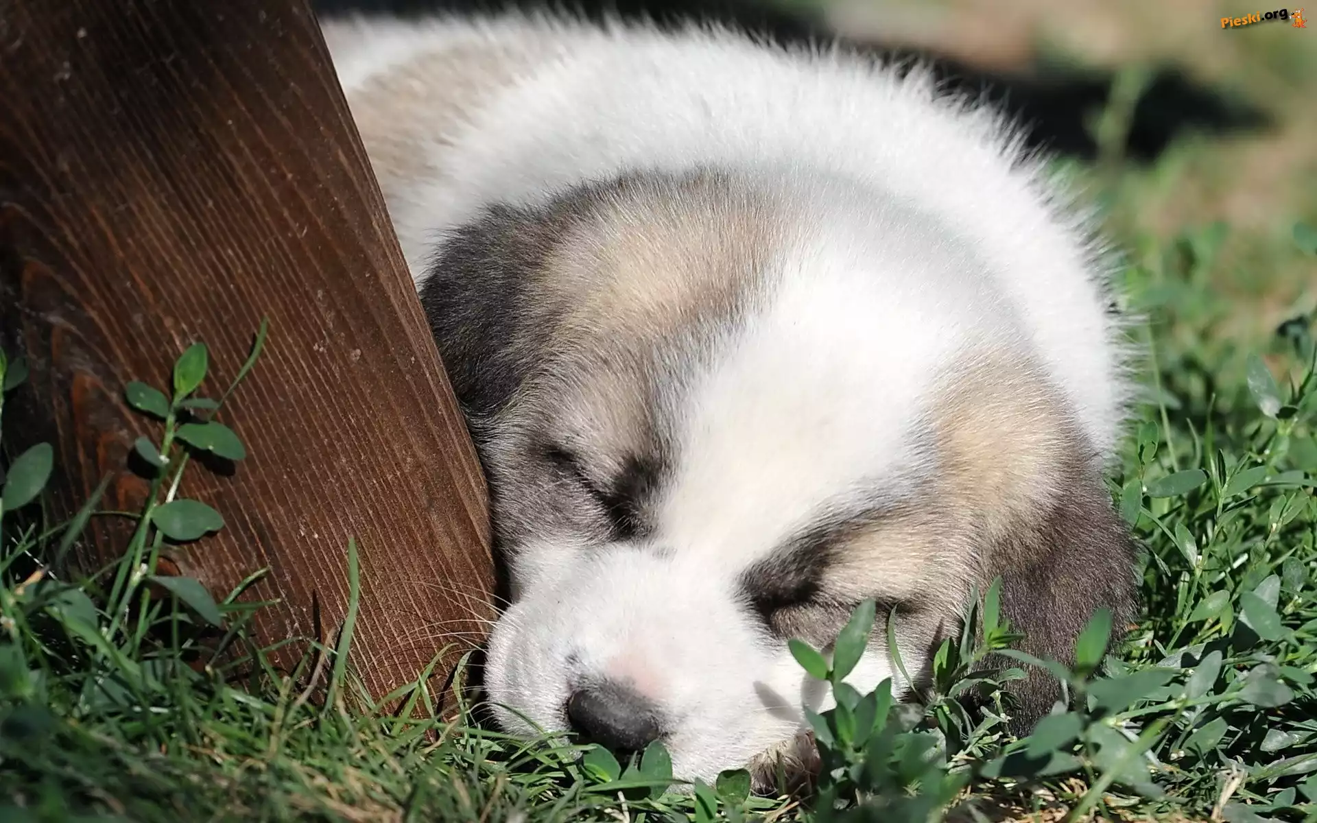 Śpiący, Piesek, Trawa zielona, Mały, Owczarek środkowoazjatycki, trawa Pnie, Chłopiec, Pies, Owczarek środkowoazjatycki Chłopiec, Pies, Przyjaciel Szczeniak Młody, Piesek, Owczarek środkowoazjatycki