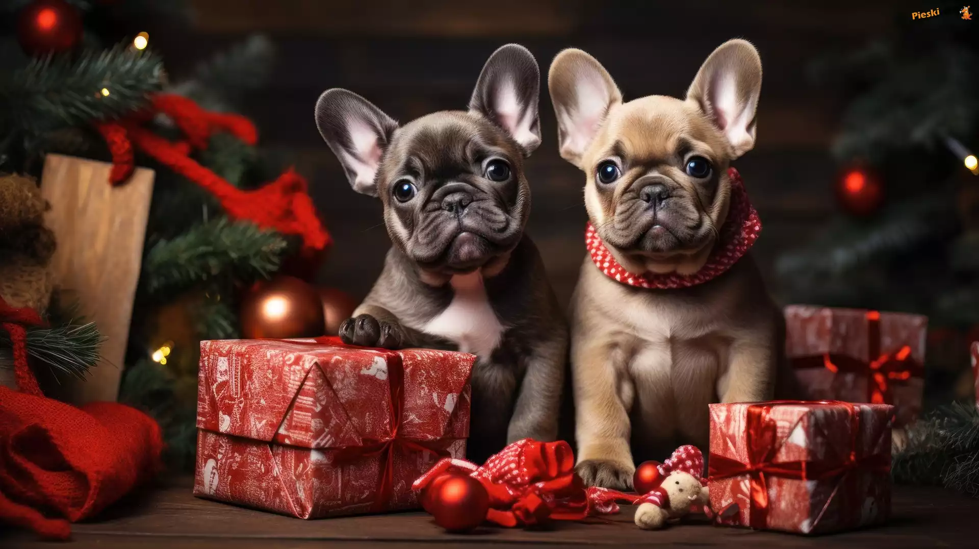 Grafika, Dwa, Psy, Prezenty, Buldogi francuskie, Szczeniaki Czerwona, Pies, Buldog francuski, Obroża Pies, Telefon Brokuły, Żółw, Piesek, Buldog francuski Pies, Buldog francuski, Róże szczeniaki, suka, karmiąca, trzy, Yorkshire Terrier Szczeniaki, Owczarka amerykańsko-kanadyjskiego Szczeniaki, Owczarka francuskiego Beaucerona mordka, Berneński pies pasterski Pies, Głowa, Uszy, Buldog francuski, Duże, Łapki Pies, Strzała, Okulary, Buldog francuski, Śmieszne, Płatki Nosek, Pyszczek, Szczeniak Bichon frise, trawa Małe, Szczeniaki, Odpoczynek