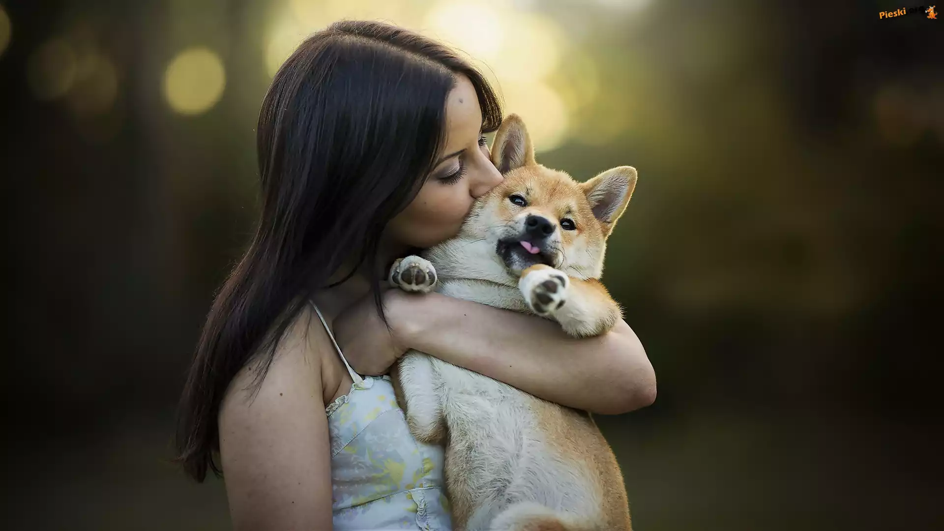 Shiba inu, Kobieta, Pies, Przyjaciele, Pieski