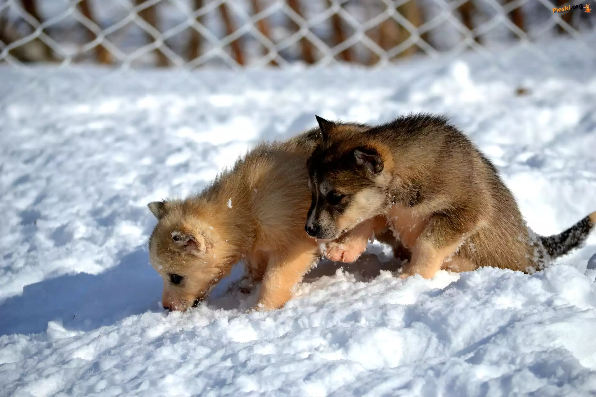Siberian husky, Psy, Szczeniaki, Śnieg, Pieski