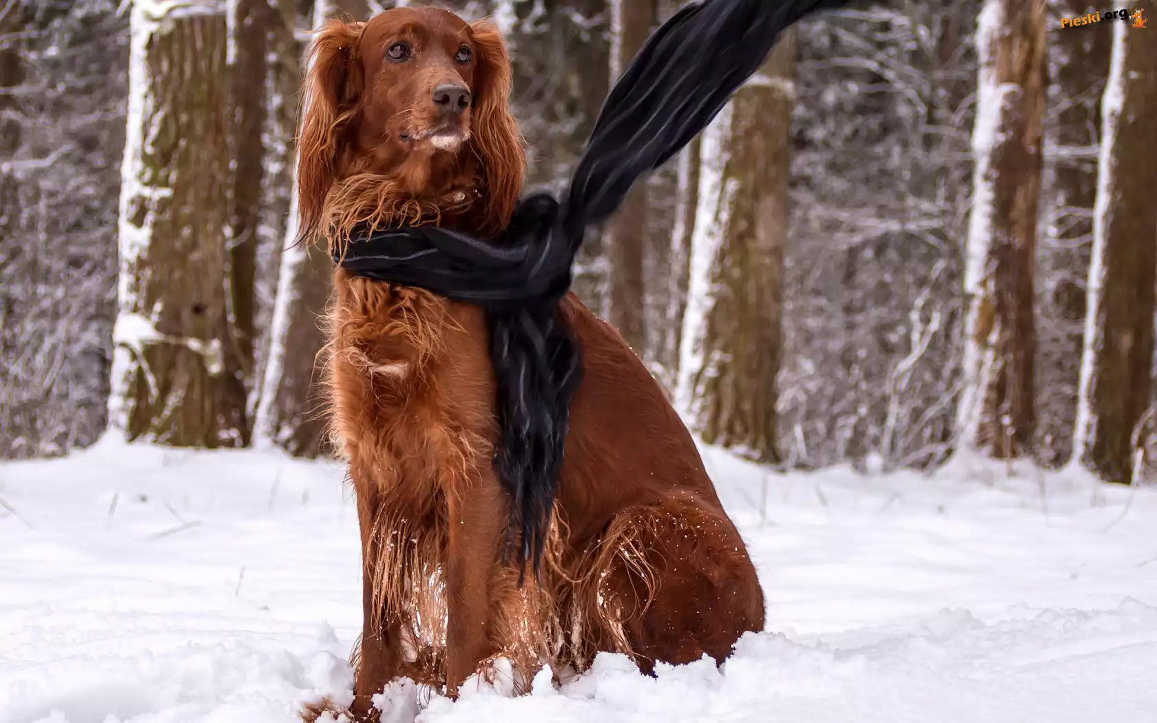 Szal, Seter, Irlandzki, Śnieg, Pieski
