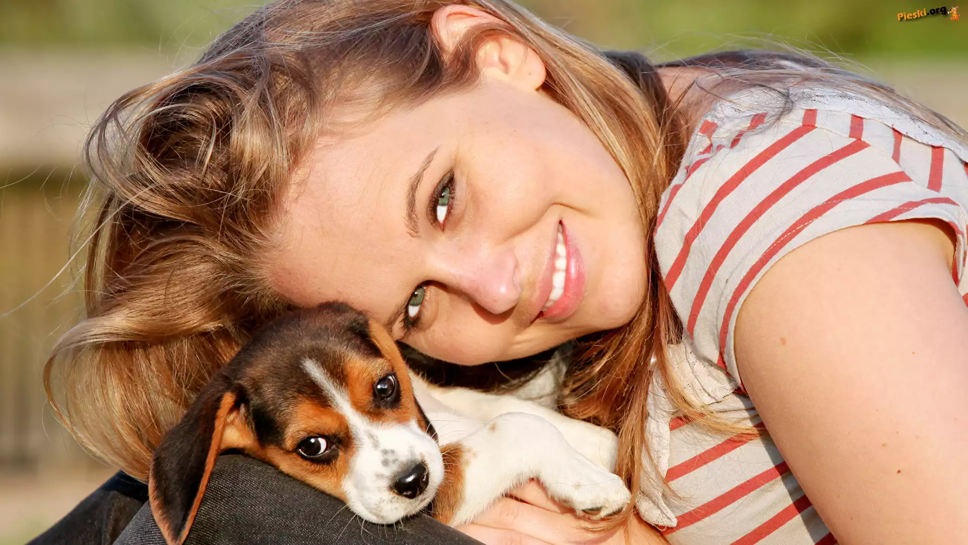 Szczeniak, Uśmiechnięta, Blondynka, Beagle