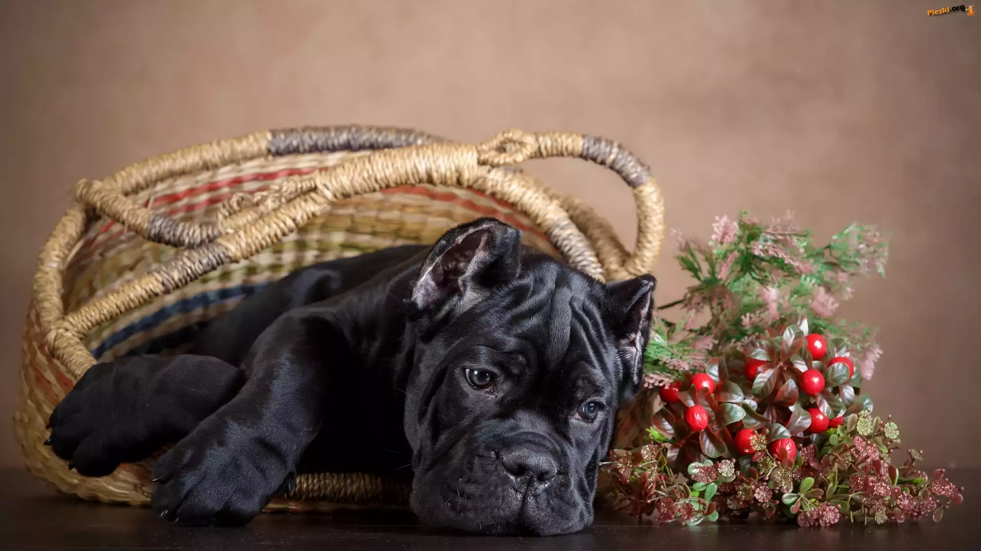 Szczeniak, Pies, Czarny, Cane Corso, Koszyk, Pieski