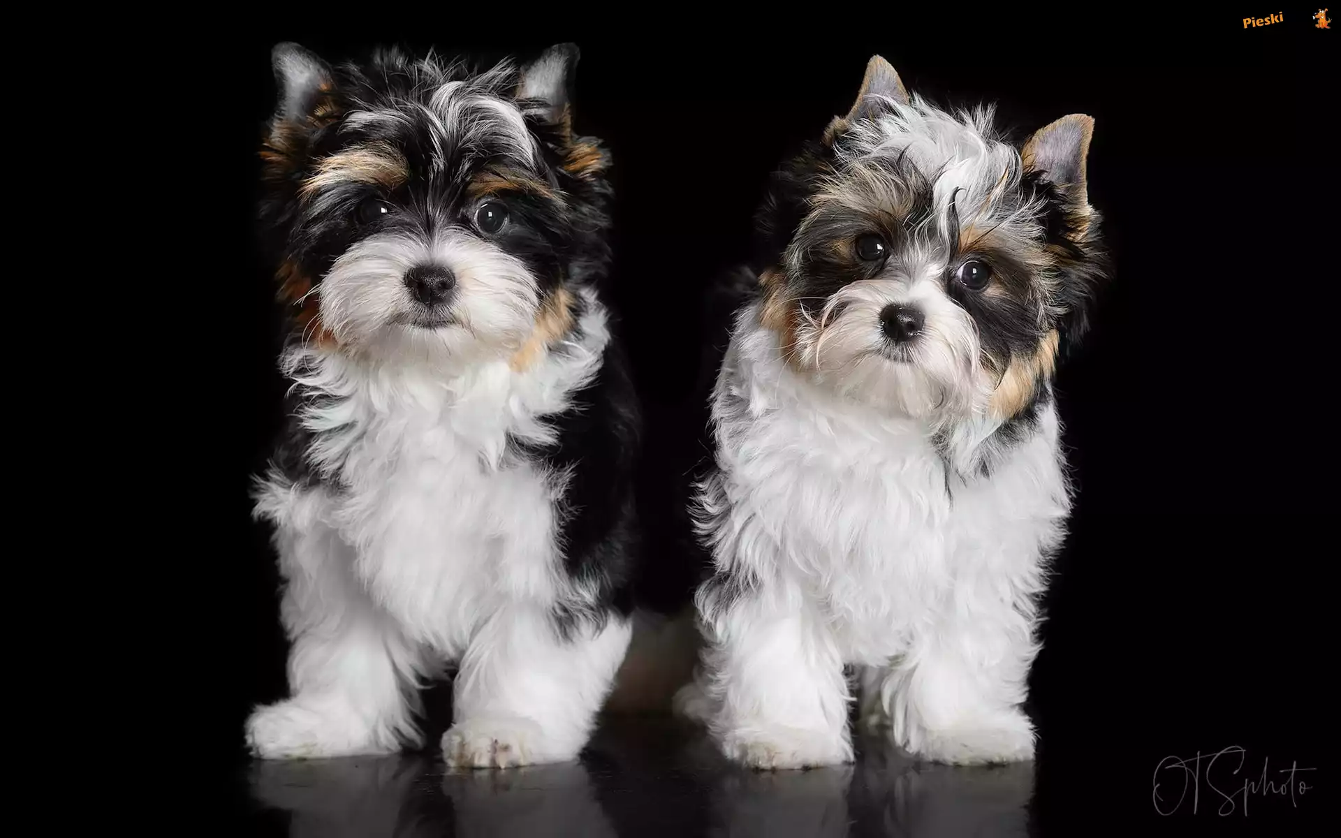 Yorkshire terrier biewer, Tło, Dwa, Czarne, Psy, Pieski