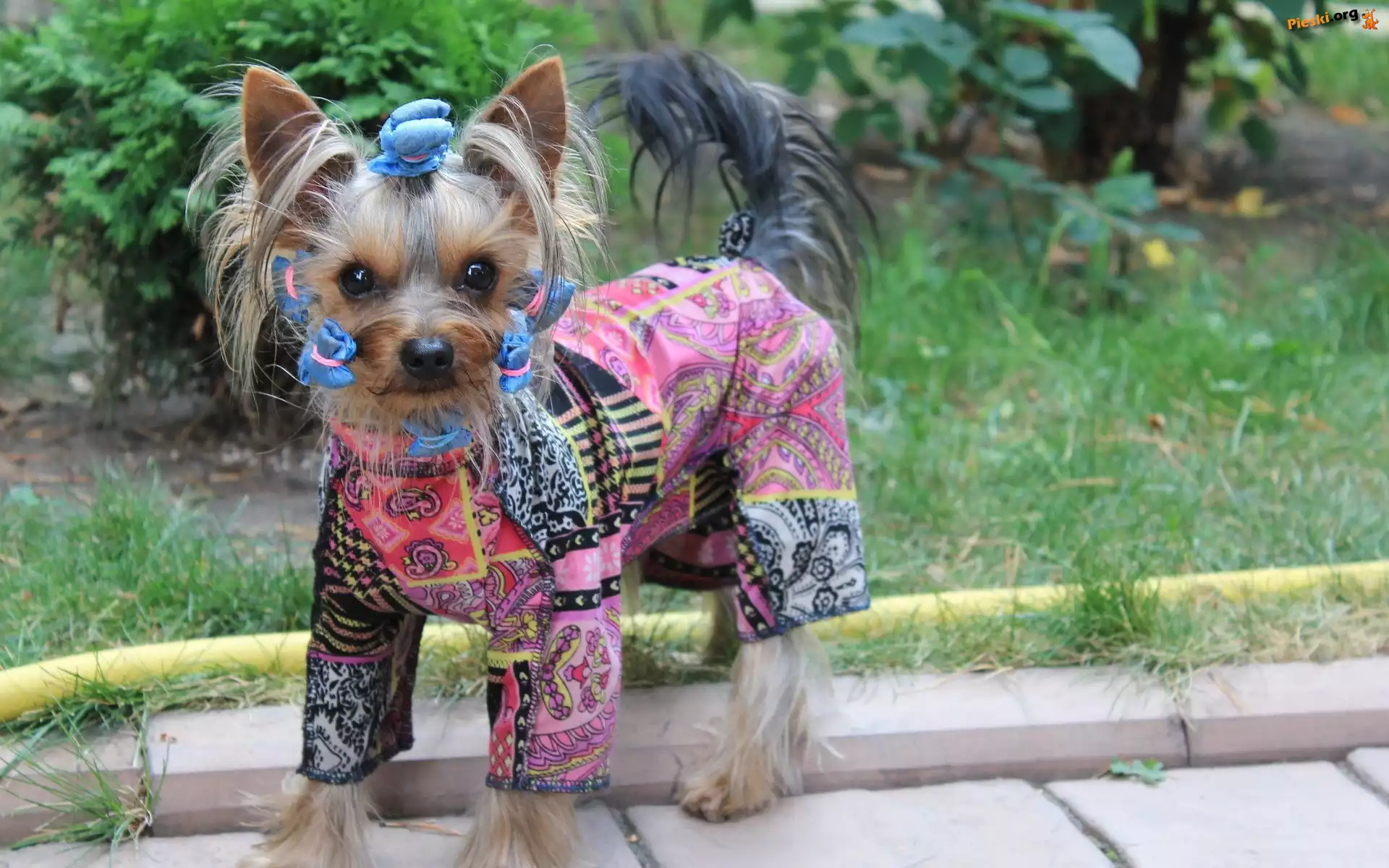 Śmieszne, Pies, Ubranie, Trawa, Pieski