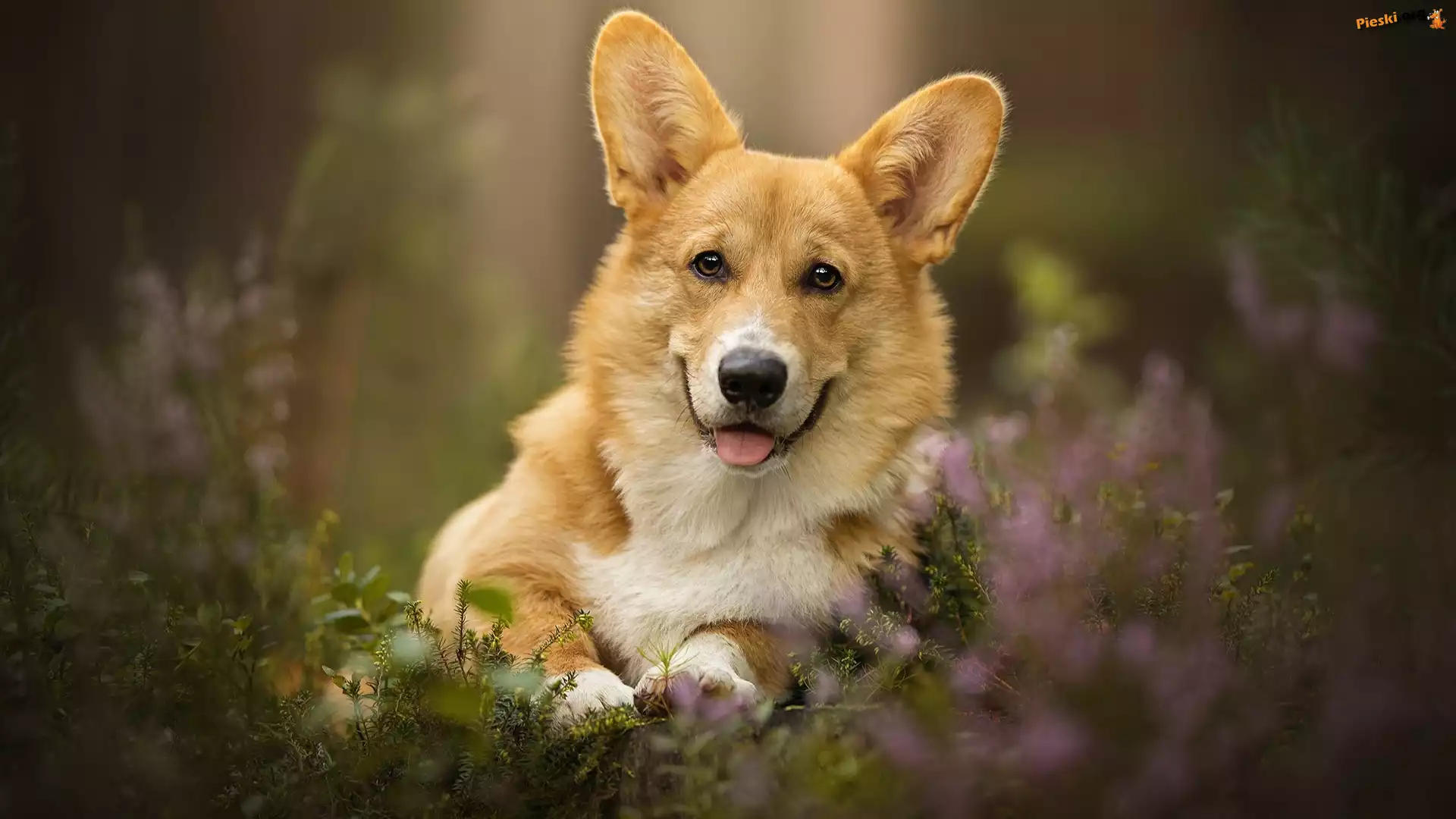 Język, Welsh corgi pembroke, Pies, Mordka, Wrzosy, Pieski