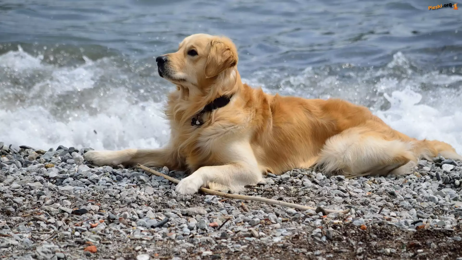 Woda, Piesek, Obroża, Kamyczki