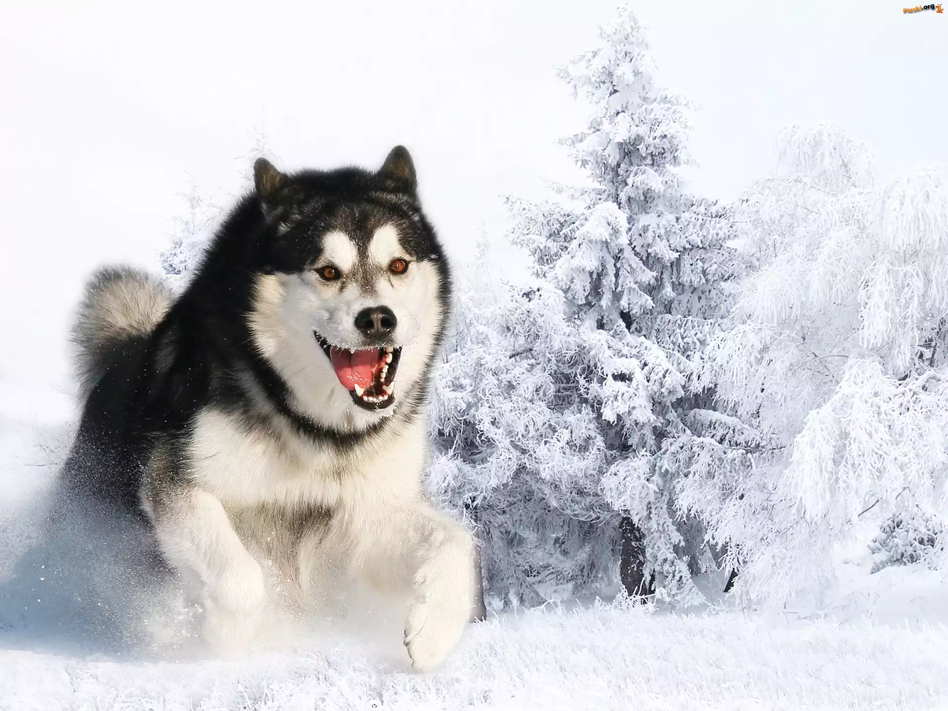 Zima, Siberian, Husky, Śnieg