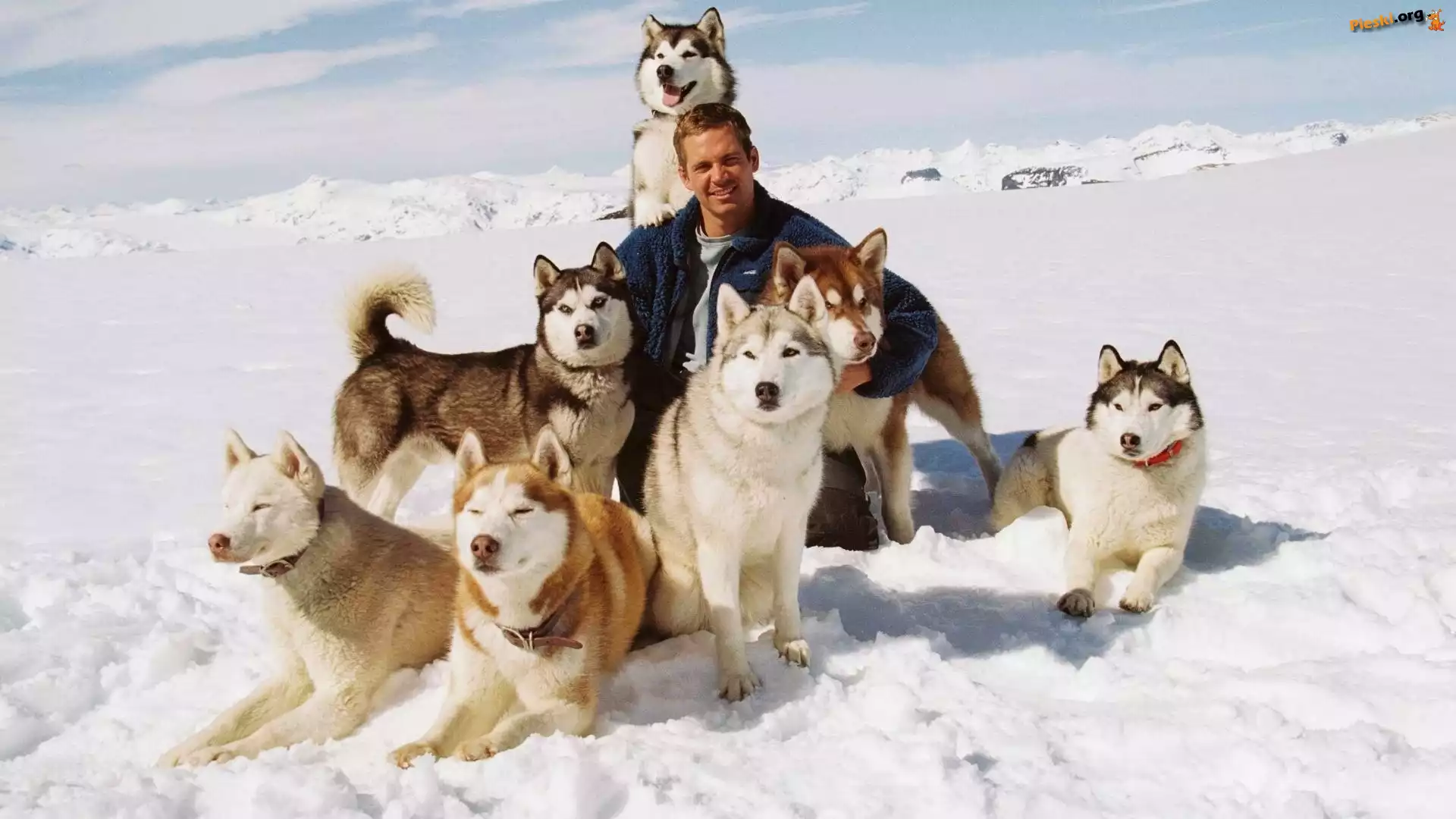 Zima, Mężczyzna, Siberian Husky, Pieski
